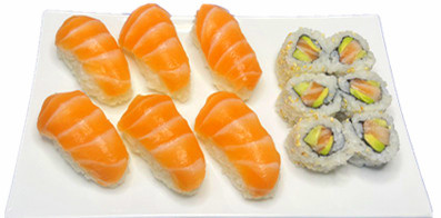 6 california oignon saumon , 4 sushi saumon ,