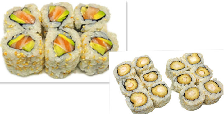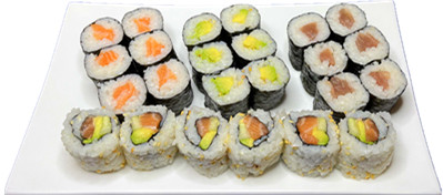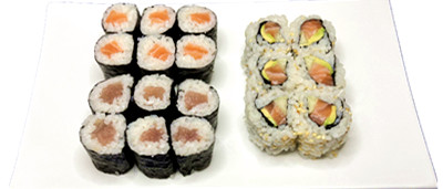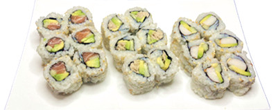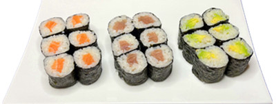 6 maki avocat , 6 maki saumon , 6 maki thon ,6 california saumon