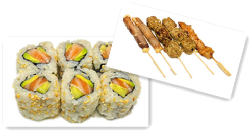 6 maki saumon , 6 maki thon , 6 california saumon