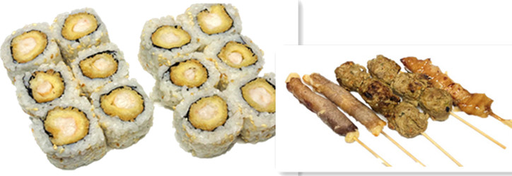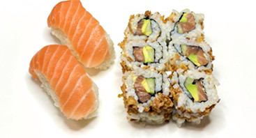 6 california saumon, 12 california tempura