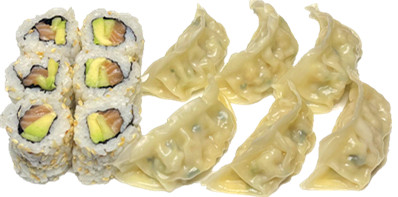 6 california saumon , 6 raviolis poulet