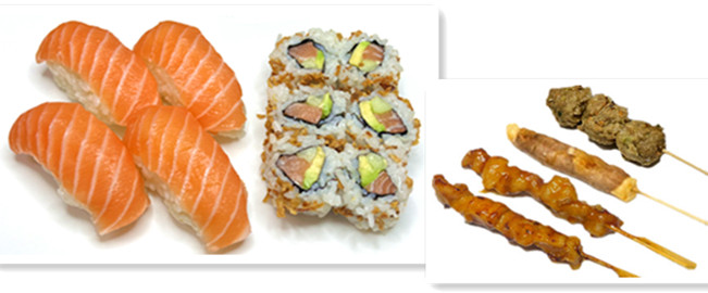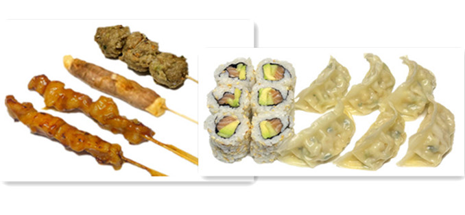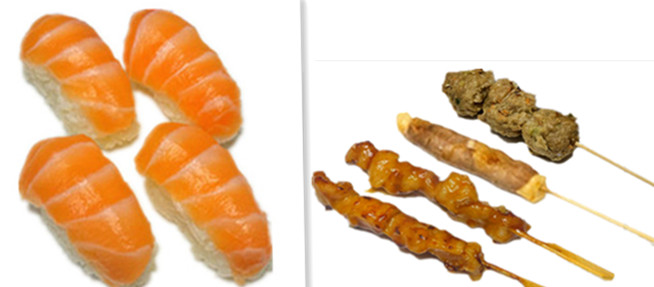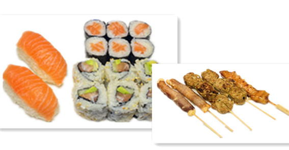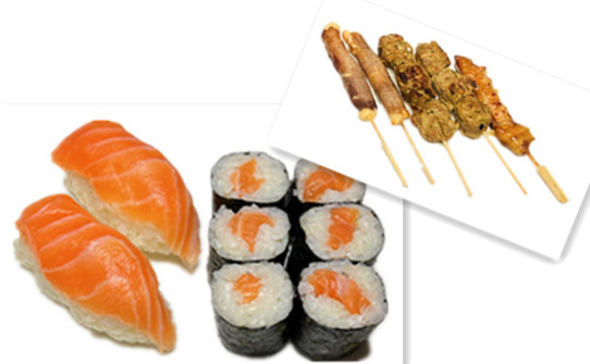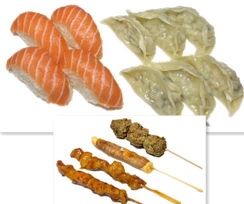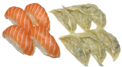 4 sushi saumon , 6 raviolis poulet