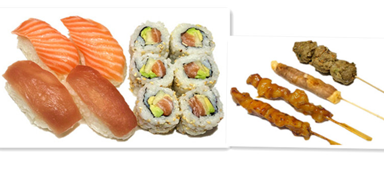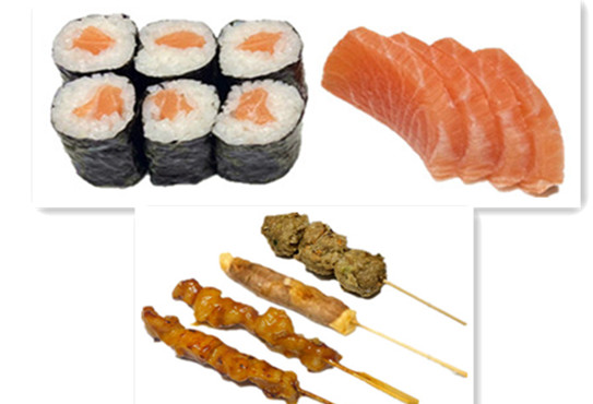 3 sushi saumon , 3 sushi thon , 3 sashimi saumon ,3 sashimi thon ,6 maki saumon
