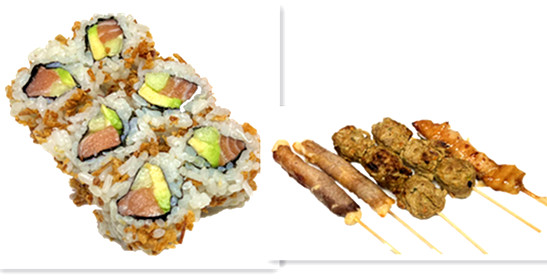 6 california saumon , 6 raviolis ,